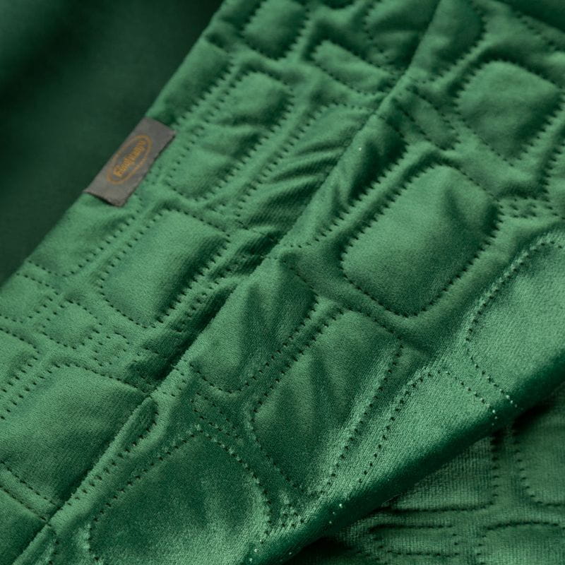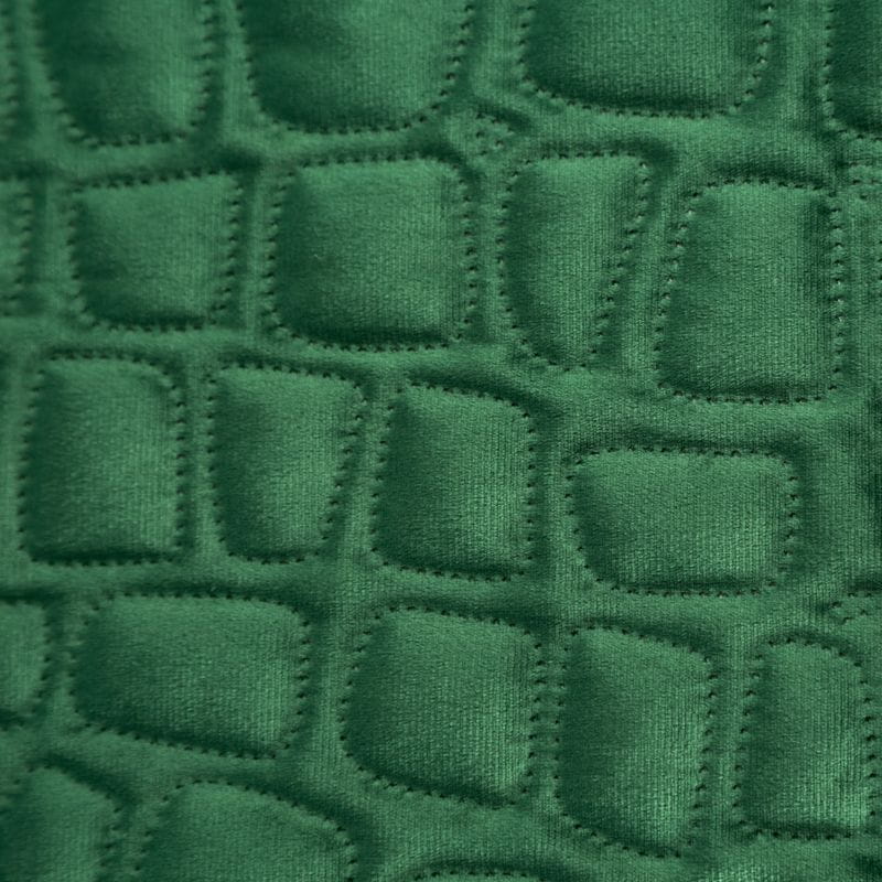 Narzuta Salvia to ciekawa prezentacja mocnego ciemno zielonego koloru. Narzuta zdobiona została eleganckim, geometrycznym wzorem przypominającym krokodylą skórę. Narzuta wykonana została w nurcie elegancji, mocna barwa podkreśli luksusowy wystrój sypialni, świetnie sprawdzi się jako element dekoracyjny lub prezent dla bliskiej osoby.