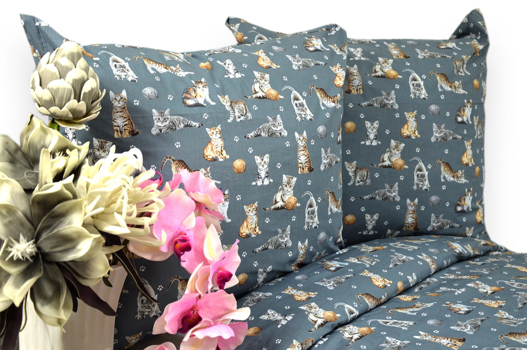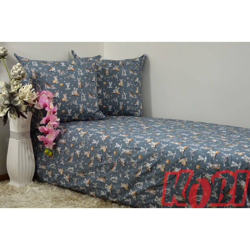 Pościel Bawełniana 140x200 Koty Szare Tło