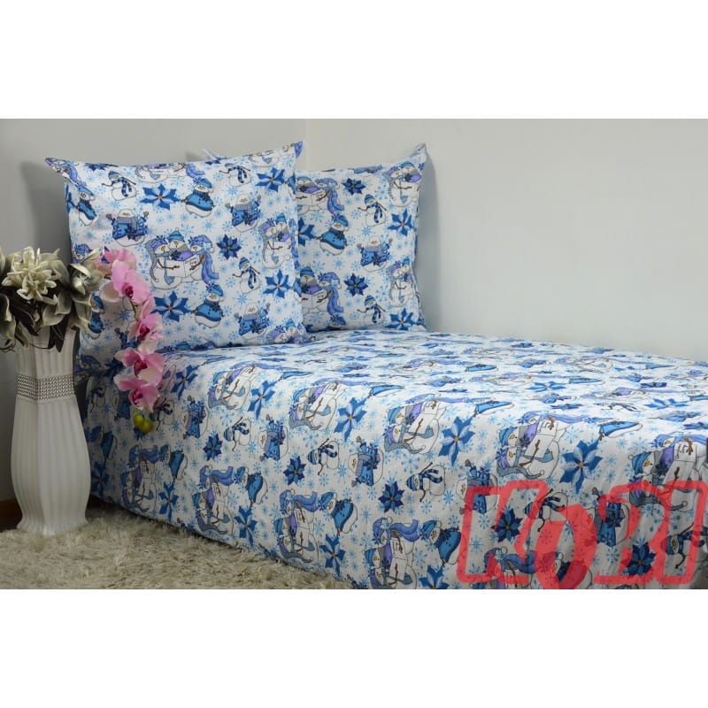 Pościel Bawełniana 140x200 Mikołaje Niebieskie