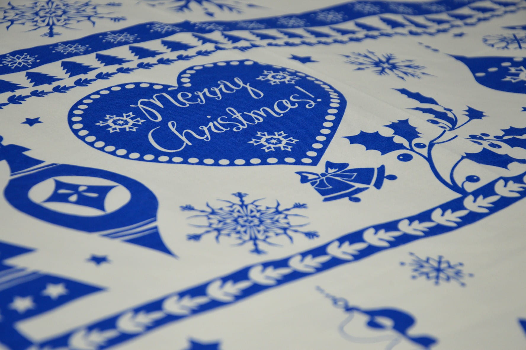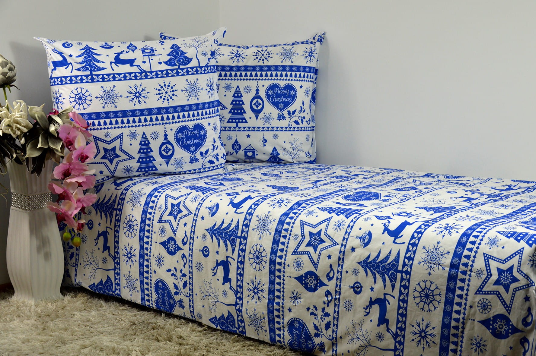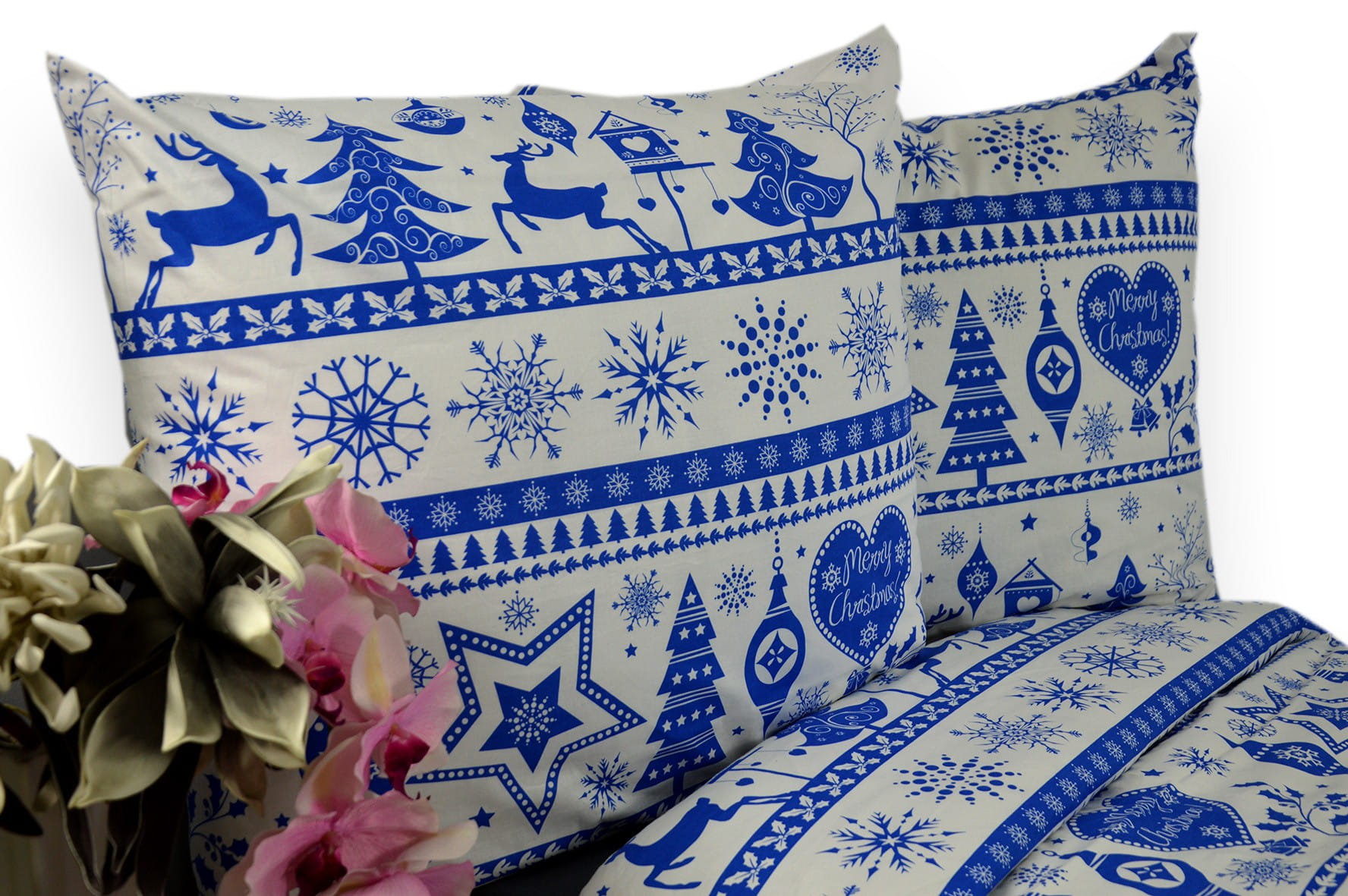 Pościel Bawełniana 140x200 świąteczna renifery niebieskie pasy 3524w