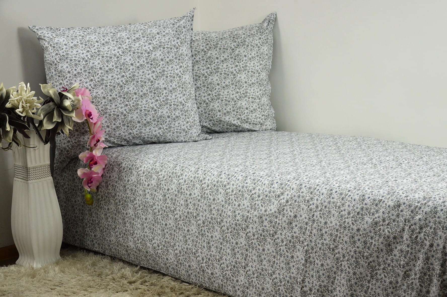Pościel Bawełniana 140x200 szare kwiatuszki