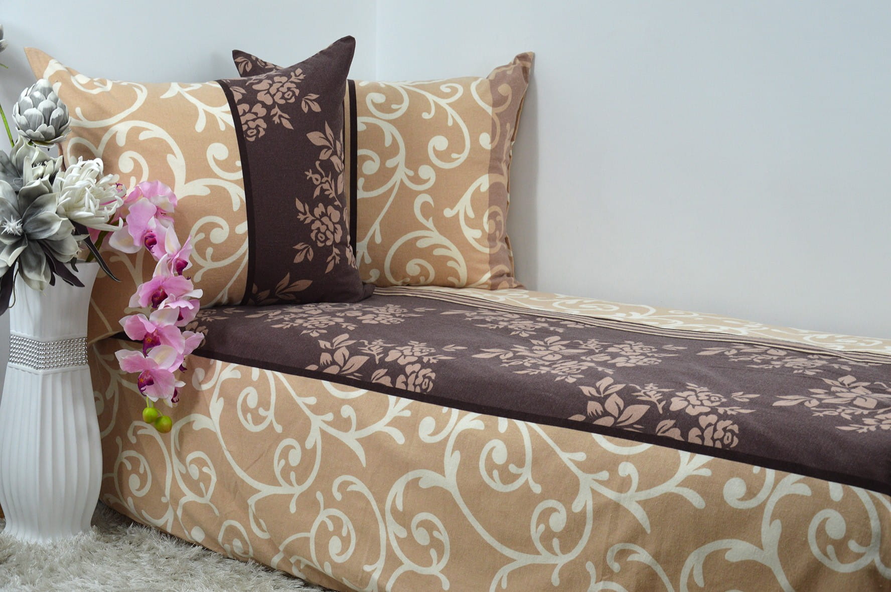 Pościel Bawełniana 140x200 winorośl brąz/krem