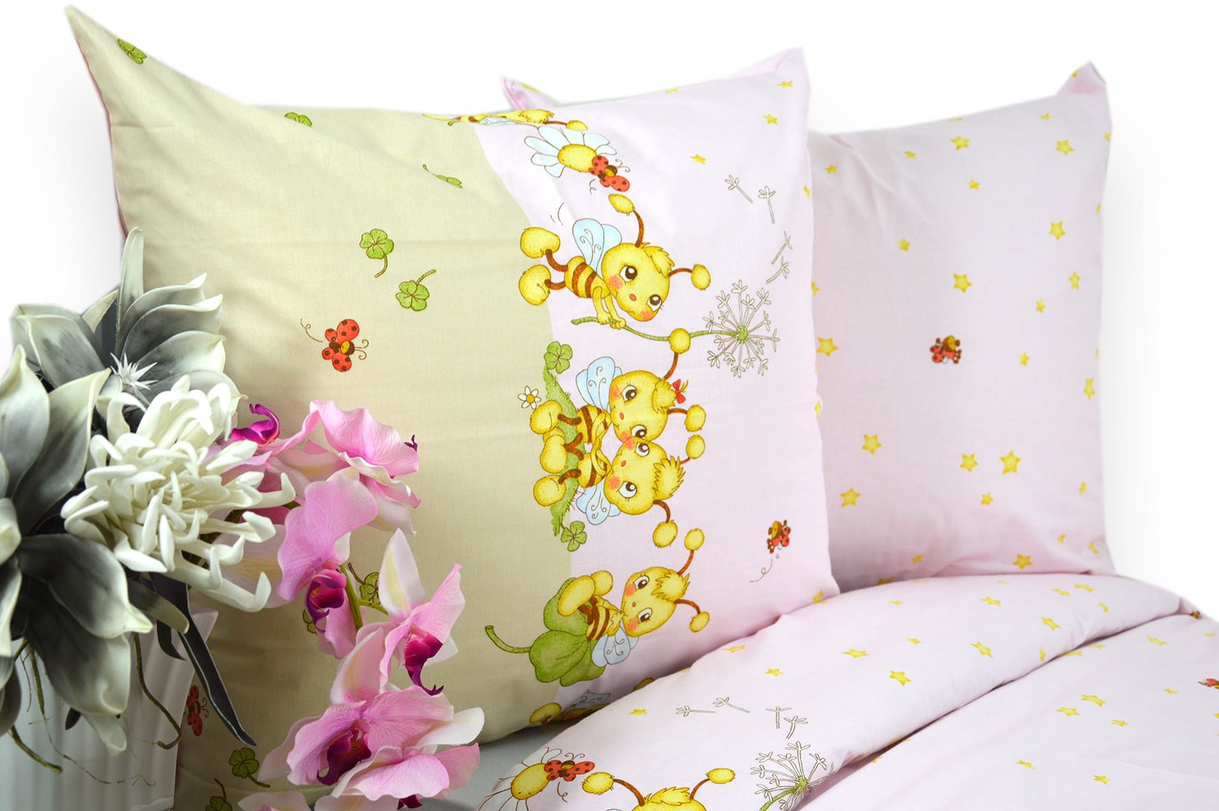Komplet pościeli bawełnianej wykonany w przyjemnej tonacji kolorów oraz wzorów. Produkt idealny do sypialni dziecięcej, lekkie i mało krzykliwe kolory pomogą w zapewnieniu komfortu podczas snu, a wzory idealnie odpowiadają gustowi każdego dziecka. Produkt jest wykonany z naturalnych materiałów, które są hipoalergiczne i wolne od wszelkich szkodliwych substancji - mogą być używane nawet przez osoby mające wrażliwą skórę. Bawełniana tkanina przepuszcza powietrze oraz odprowadza wilgoć. Całość zapinana jest na praktyczny zamek błyskawiczny. Tkanina posiada certyfikat Oeko-tex standard.