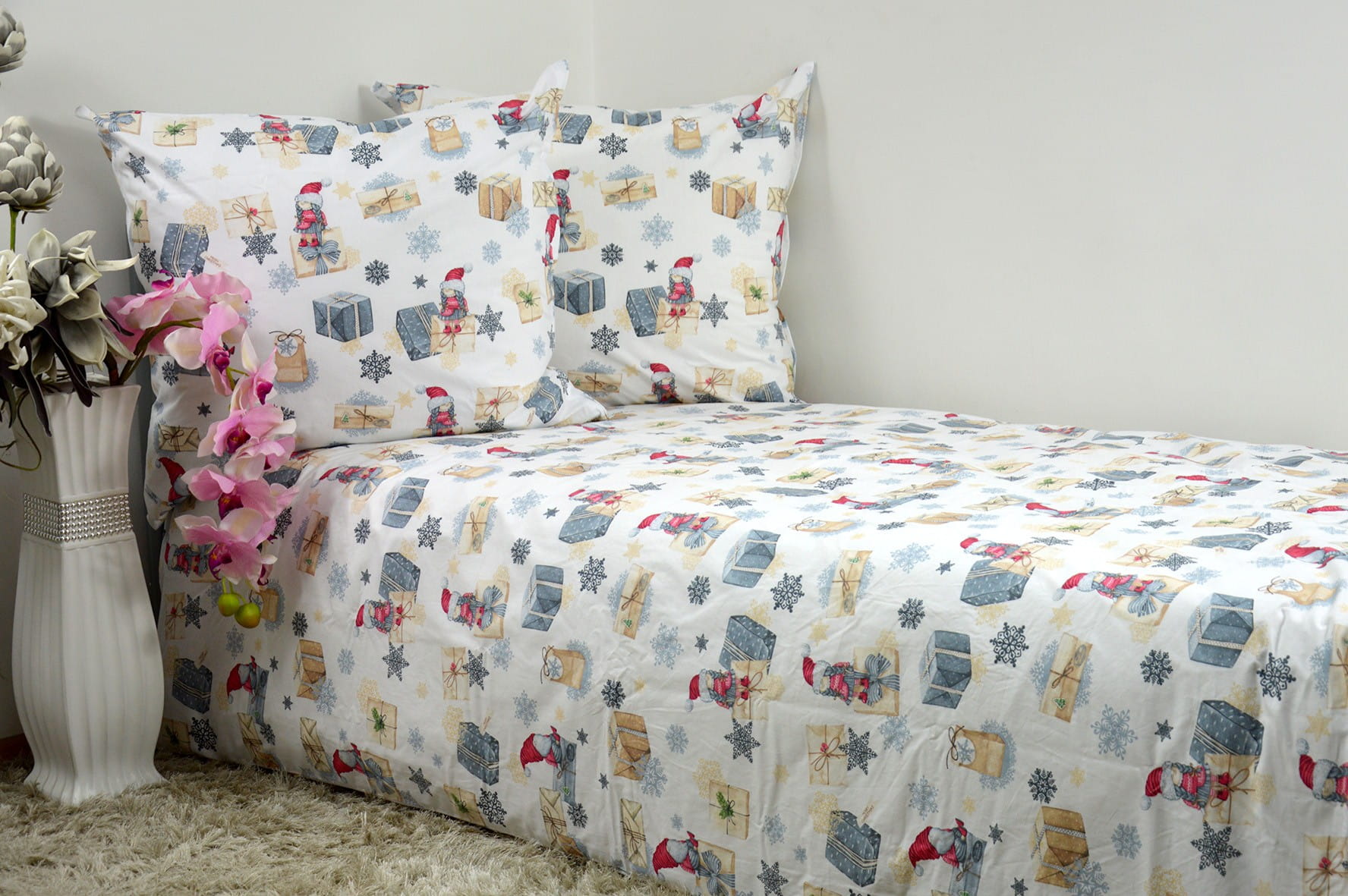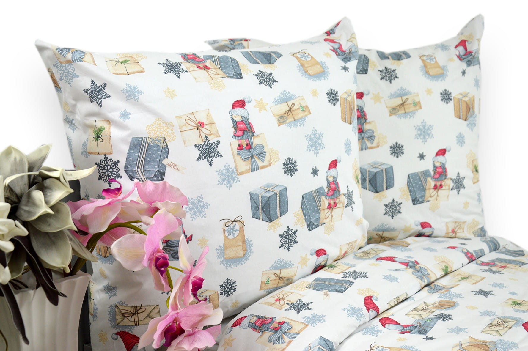 Pościel Bawełniana 160x200 świąteczna Mikołaj i prezenty