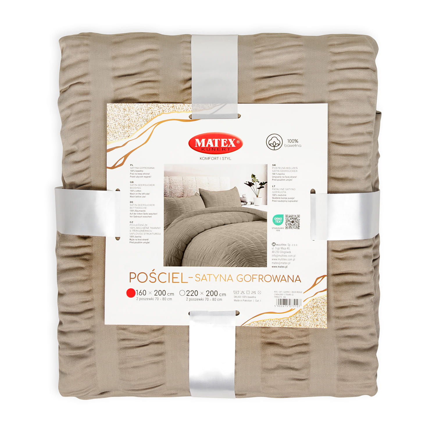 Pościel Satyna Gofrowana 160x200 Ciemny Beż