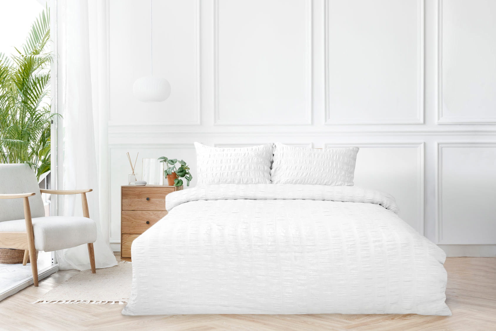 Pościel Satyna Gofrowana 220x200 Biel