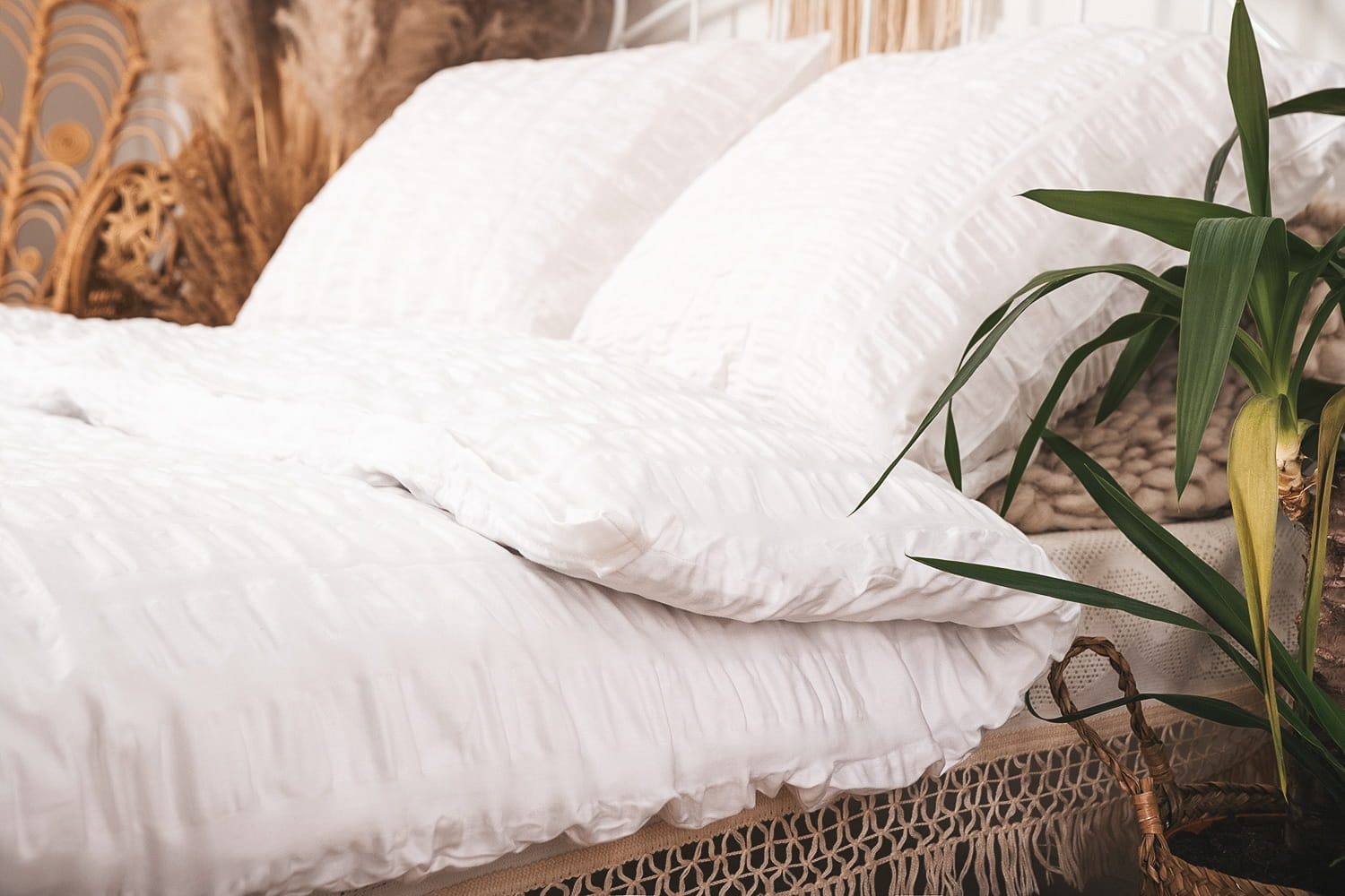 Pościel dzięki swojej strukturze zyskuje ciekawy, wyrazisty charakter, jest to idealny dodatek do sypialni, w której chcemy przełamać surowy i nowoczesny klimat. Jej powierzchnia sprawia, że komplet staje się bardzo praktyczny w konserwacji, nie trzeba go prasować, ponad to materiał dobrze znosi częste pranie w temperaturze 40°C.