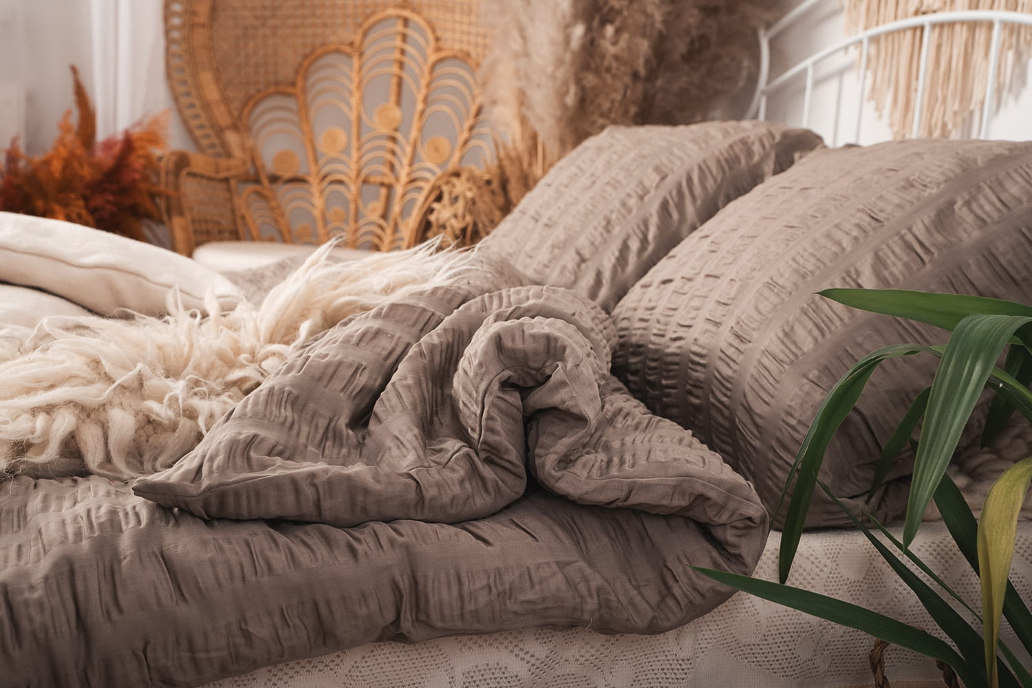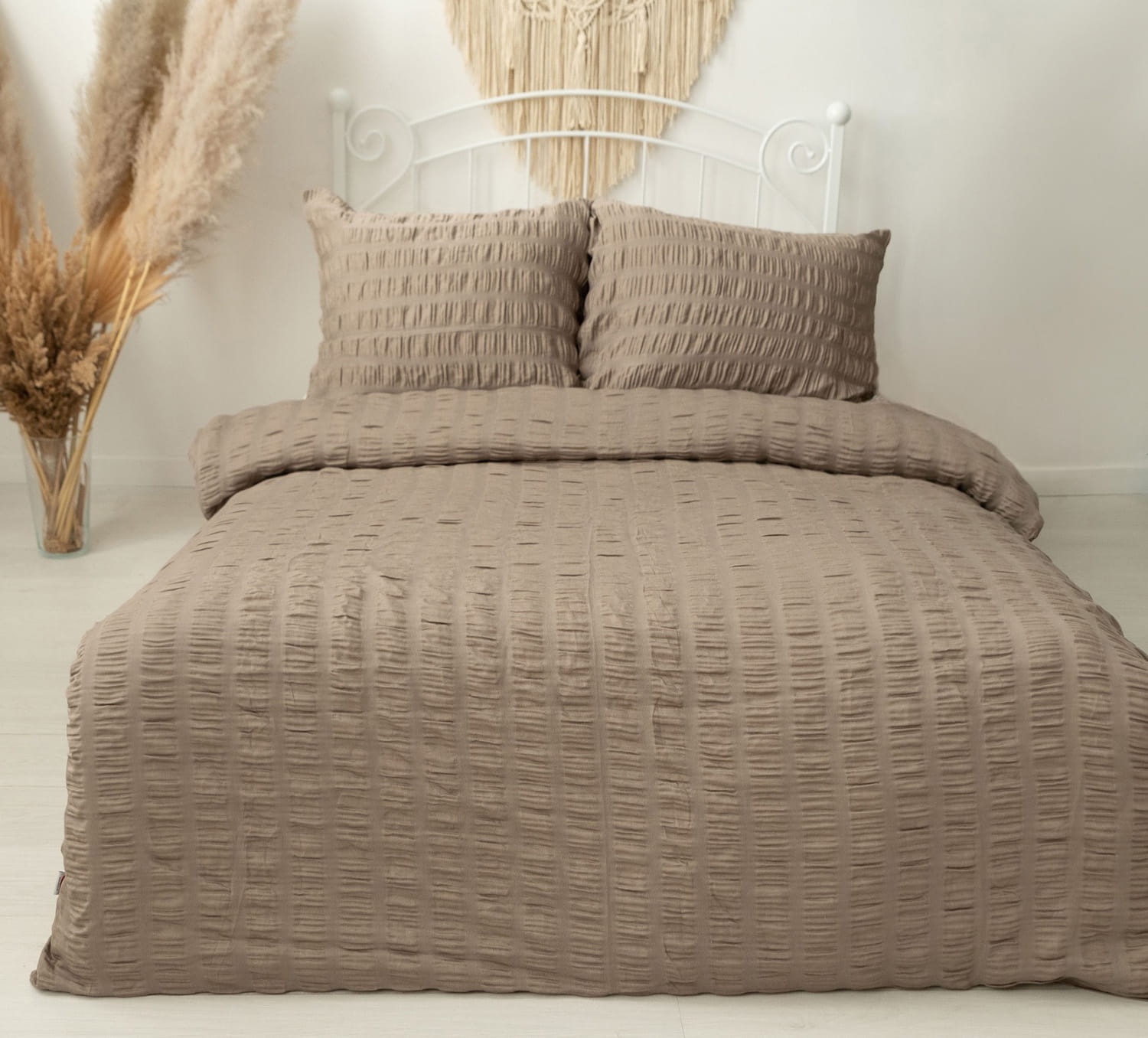 Pościel Satyna Gofrowana 220x200 Ciemny Beż