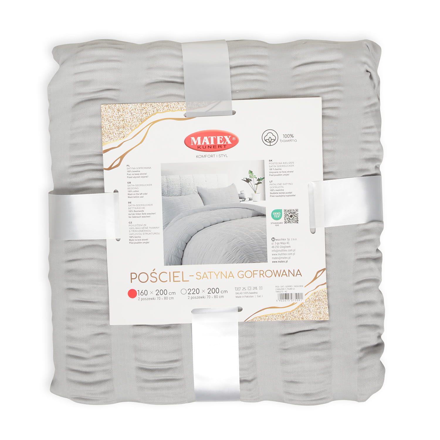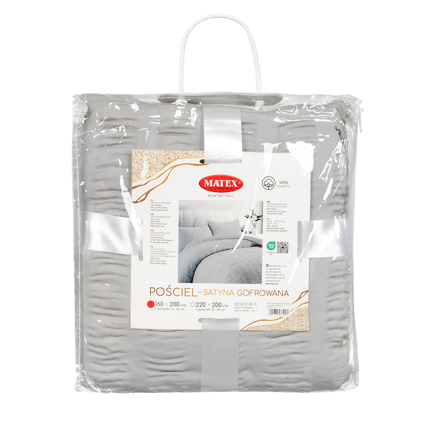 Pościel Satyna Gofrowana 220x200 Jasny Popiel