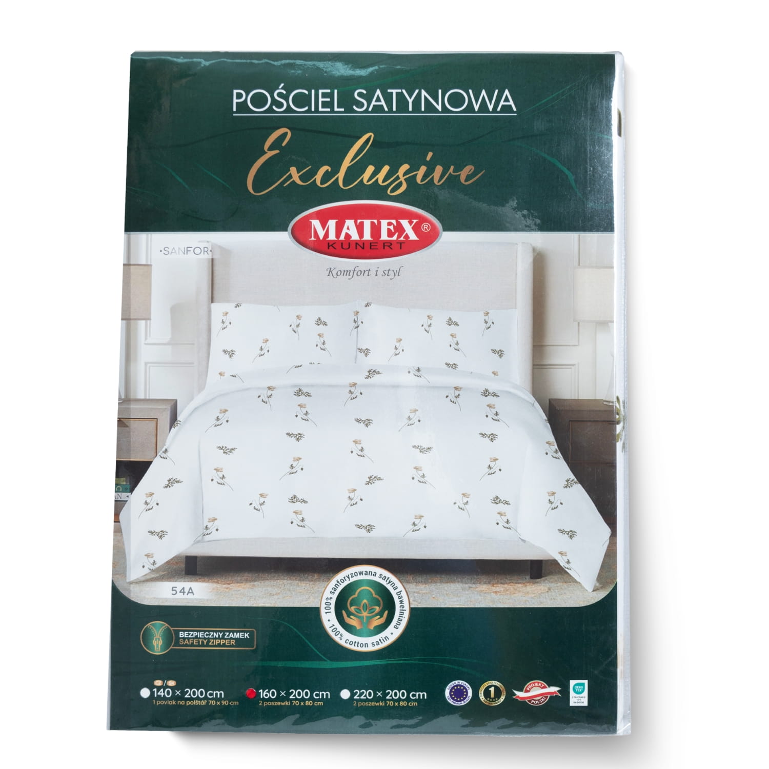 Pościel satynowa marki Matex wykonana z naturalnej satyny bawełnianej. Pościel ma delikatną, gładką powierzchnię, która daje przyjemne doznania w kontakcie ze skórą, jest lekka i zwiewna, doskonale nadaje się na lato. Tkanina jest gęsto tkana, splot satynowy nadaje jej lśniącej powierzchni, dzięki temu kolory i wzór jest uwydatniony. Całość wykonana jest z materiałów mających certyfikat oeko-tex standard, pościel jest w pełni bezpieczna w użytkowaniu i zapewnia komfort przez całą noc. Poszwa i poszewki zapinane na zamek błyskawiczny ukryty pod materiałem, dzięki temu jest niewyczuwalny podczas snu. Pościel może być prana w pralce z użyciem delikatnych detergentów.