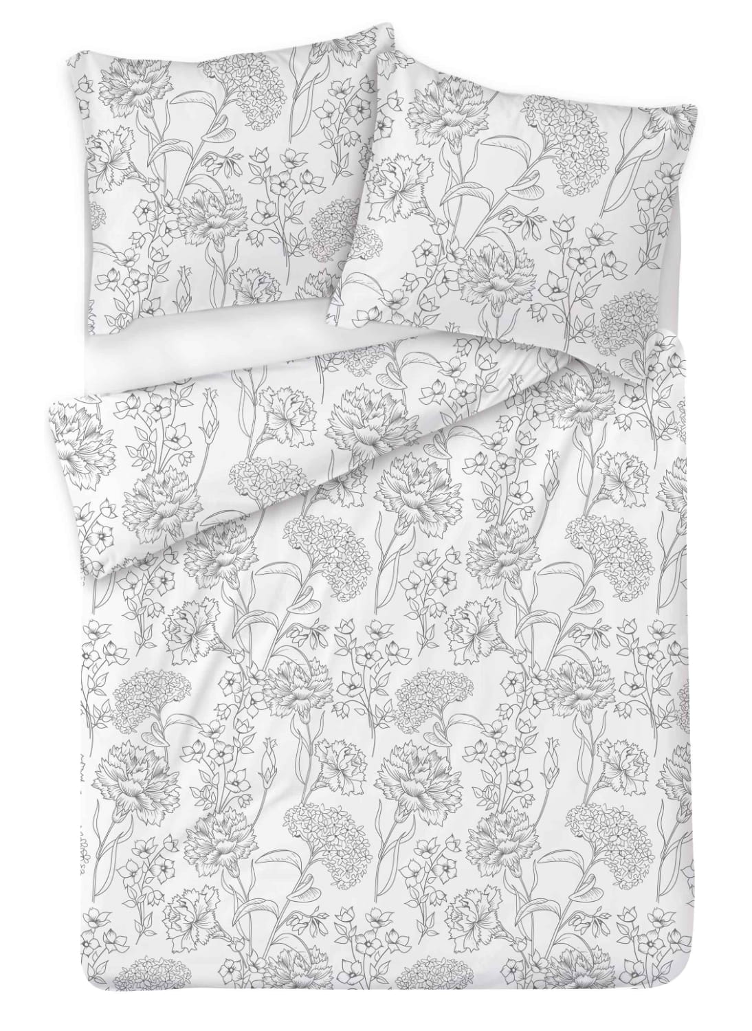 Pościel Satynowa 160x200 EXCLUSIVE Szare kwiaty