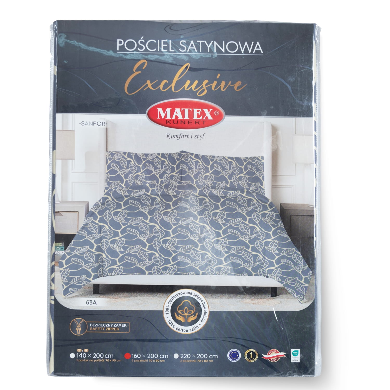 Pościel satynowa marki Matex wykonana z naturalnej satyny bawełnianej. Pościel ma delikatną, gładką powierzchnię, która daje przyjemne doznania w kontakcie ze skórą, jest lekka i zwiewna, doskonale nadaje się na lato. Tkanina jest gęsto tkana, splot satynowy nadaje jej lśniącej powierzchni, dzięki temu kolory i wzór jest uwydatniony. Całość wykonana jest z materiałów mających certyfikat oeko-tex standard, pościel jest w pełni bezpieczna w użytkowaniu i zapewnia komfort przez całą noc. Poszwa i poszewki zapinane na zamek błyskawiczny ukryty pod materiałem, dzięki temu jest niewyczuwalny podczas snu. Pościel może być prana w pralce z użyciem delikatnych detergentów.
