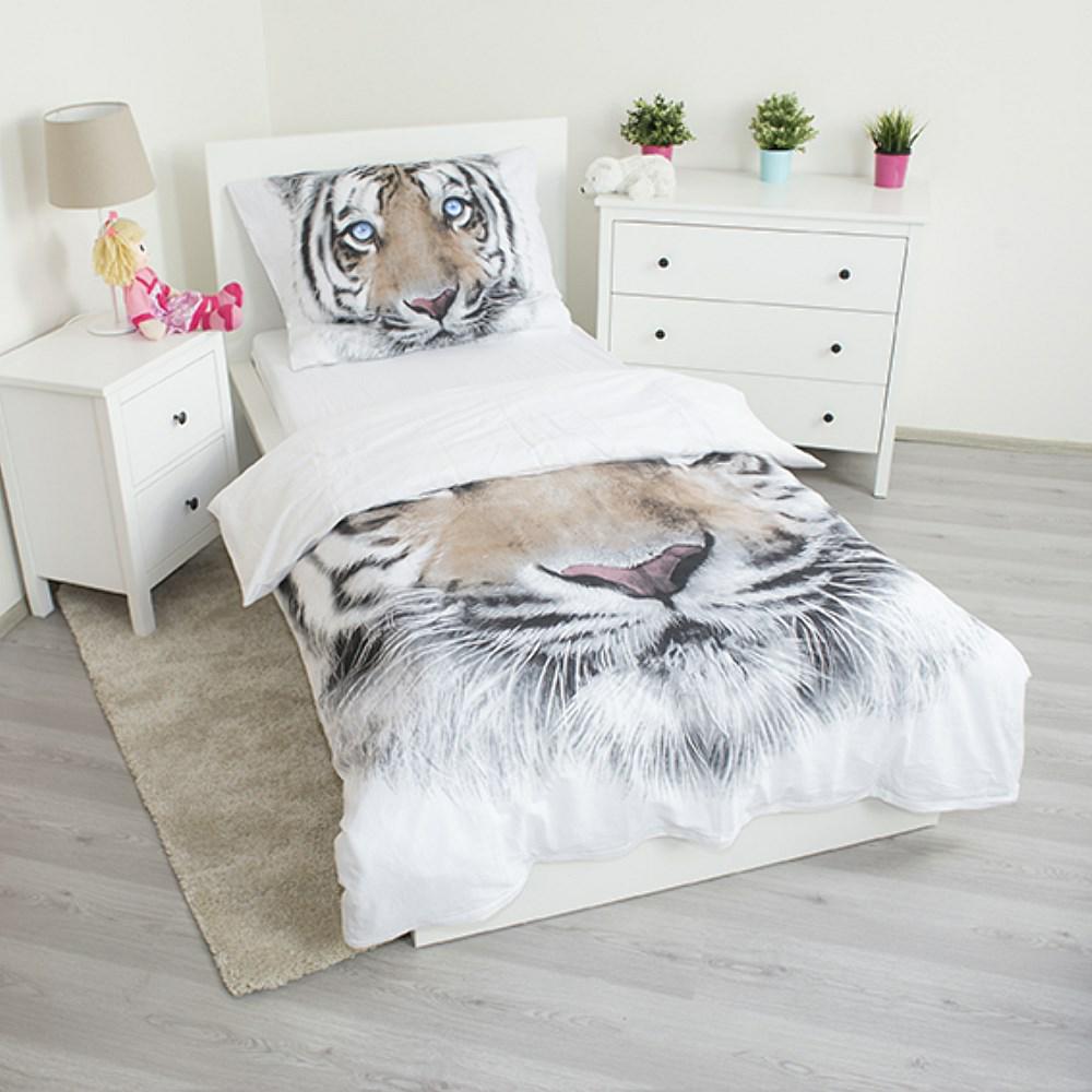 Pościel bawełniana 140x200 Tygrys Biały