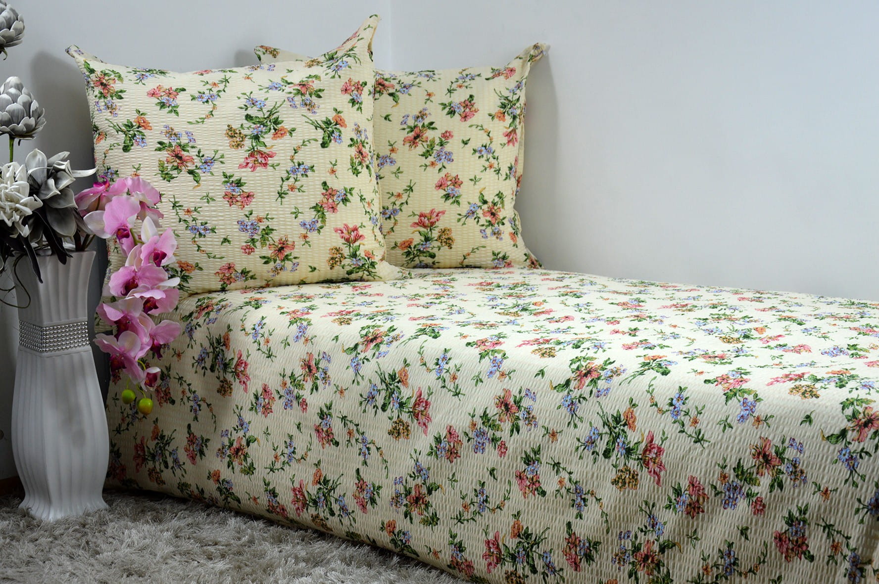 Pościel bawełniana 140x200 polne kwiaty tło krem