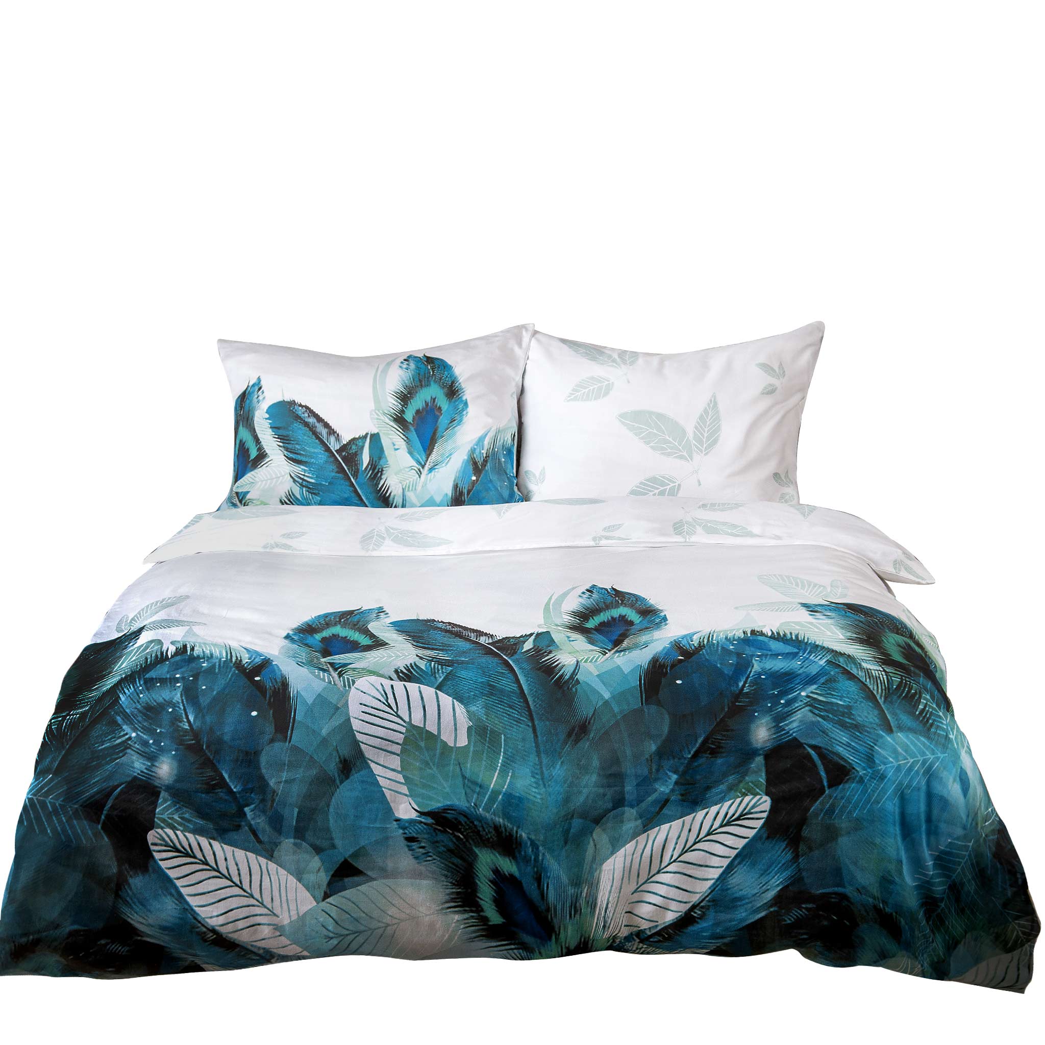 Pościel satyna bawełniana 220x200 Panel Turkusowe Pióra