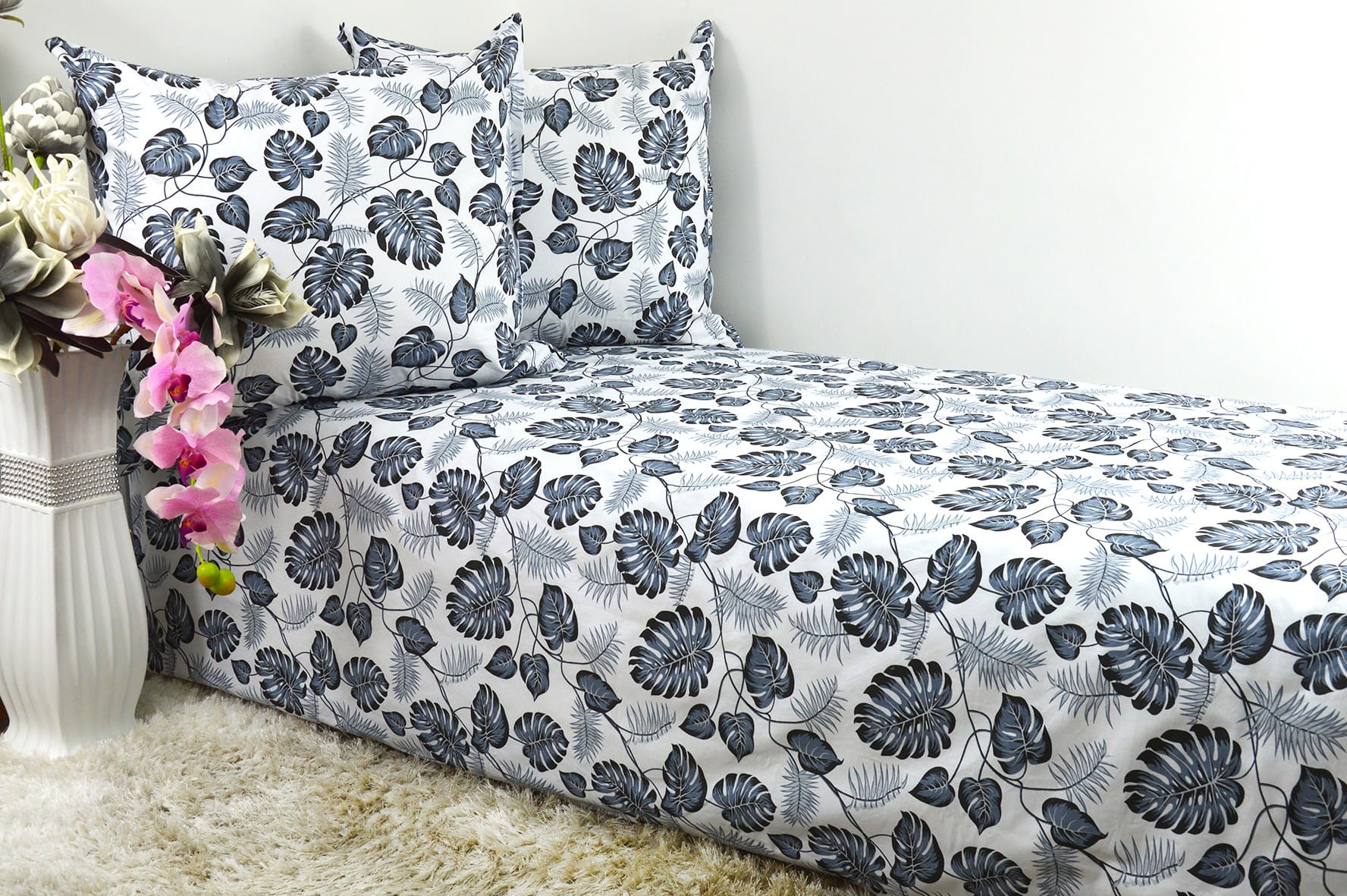 Pościel z Kory 160x200 monstera szara