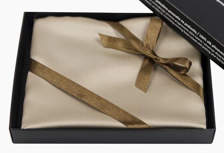 Poszewka z jedwabiu morwowego o gramaturze 19mm. Jej gładka powierzchnia i delikatny połysk nadają jej elegancję i luksusowy wygląd. Wykonana z naturalnego jedwabiu zapewnia uczcie delikatnej miękkości. Jedwab ma korzystny wpływ na jakość skóry i włosów, które dzięki kontakcie z tkaniną nabierają blasku i zachowują odpowiedni poziom nawilżenia. Nie podrażnia i nie uczula, nadaje się dla osób z wrażliwą skórą oraz dla alergików.