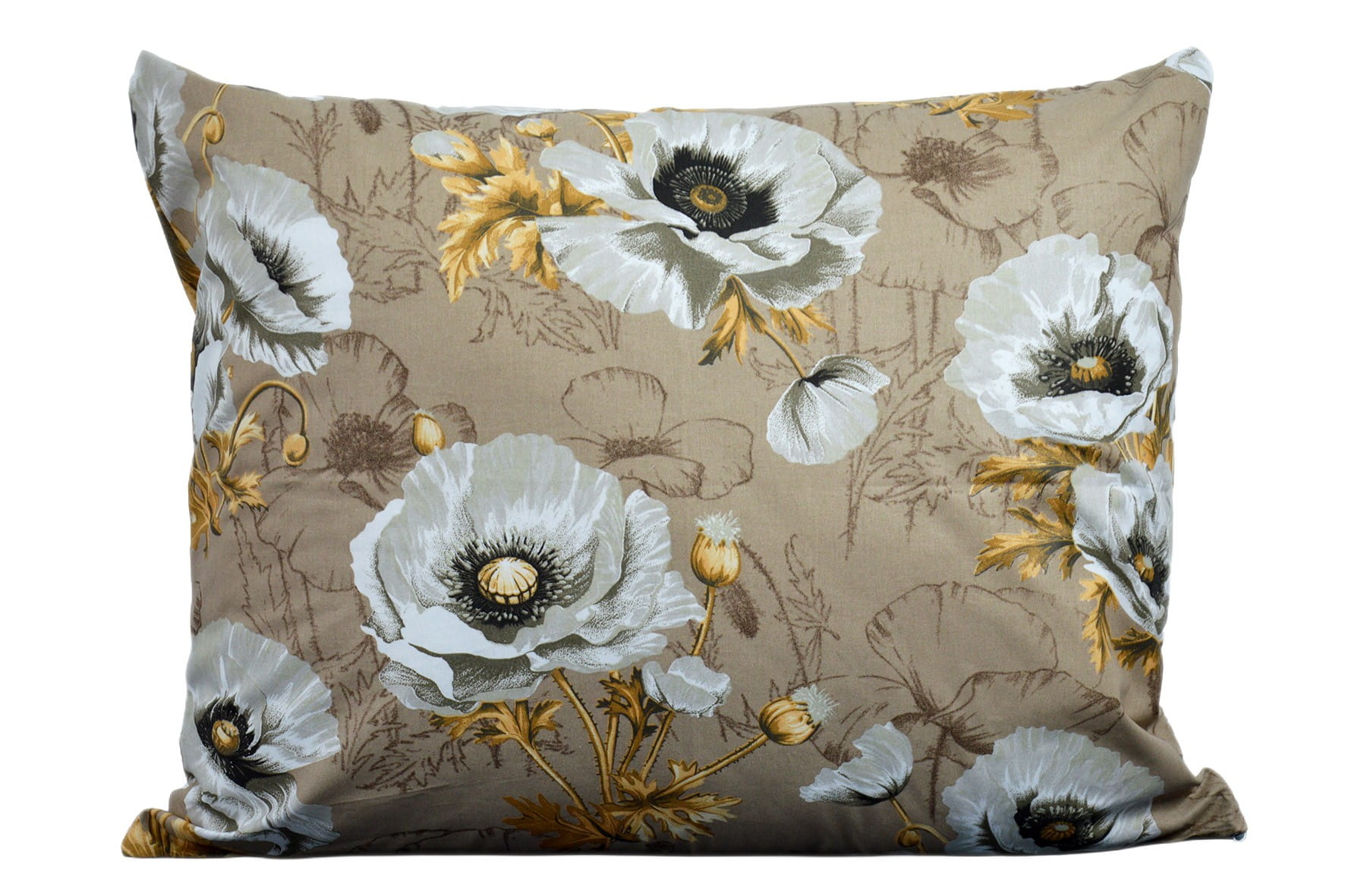 Poszewka bawełniana 50x60 Białe maki beżowe tło 3520