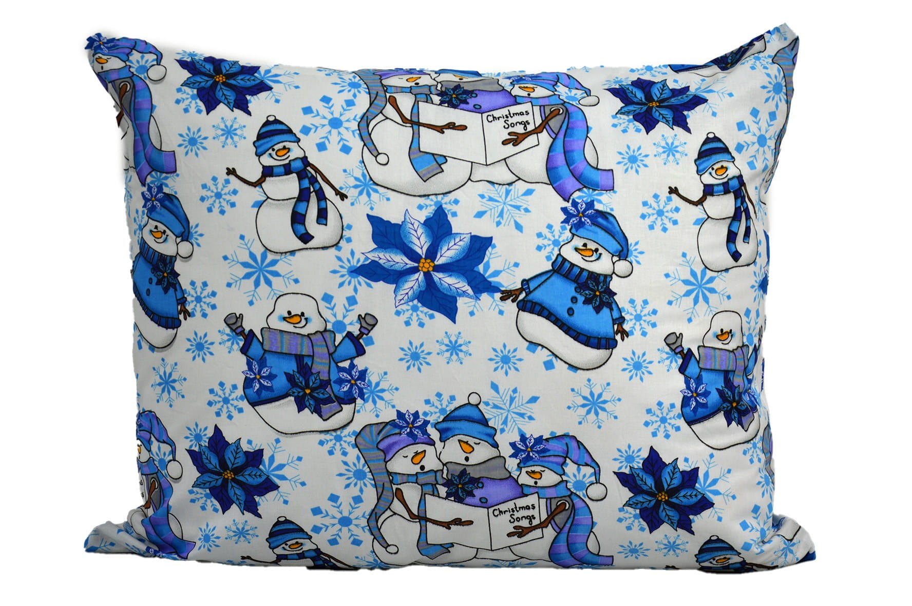 Poszewka bawełniana 50x60 świąteczna bałwanki niebieskie