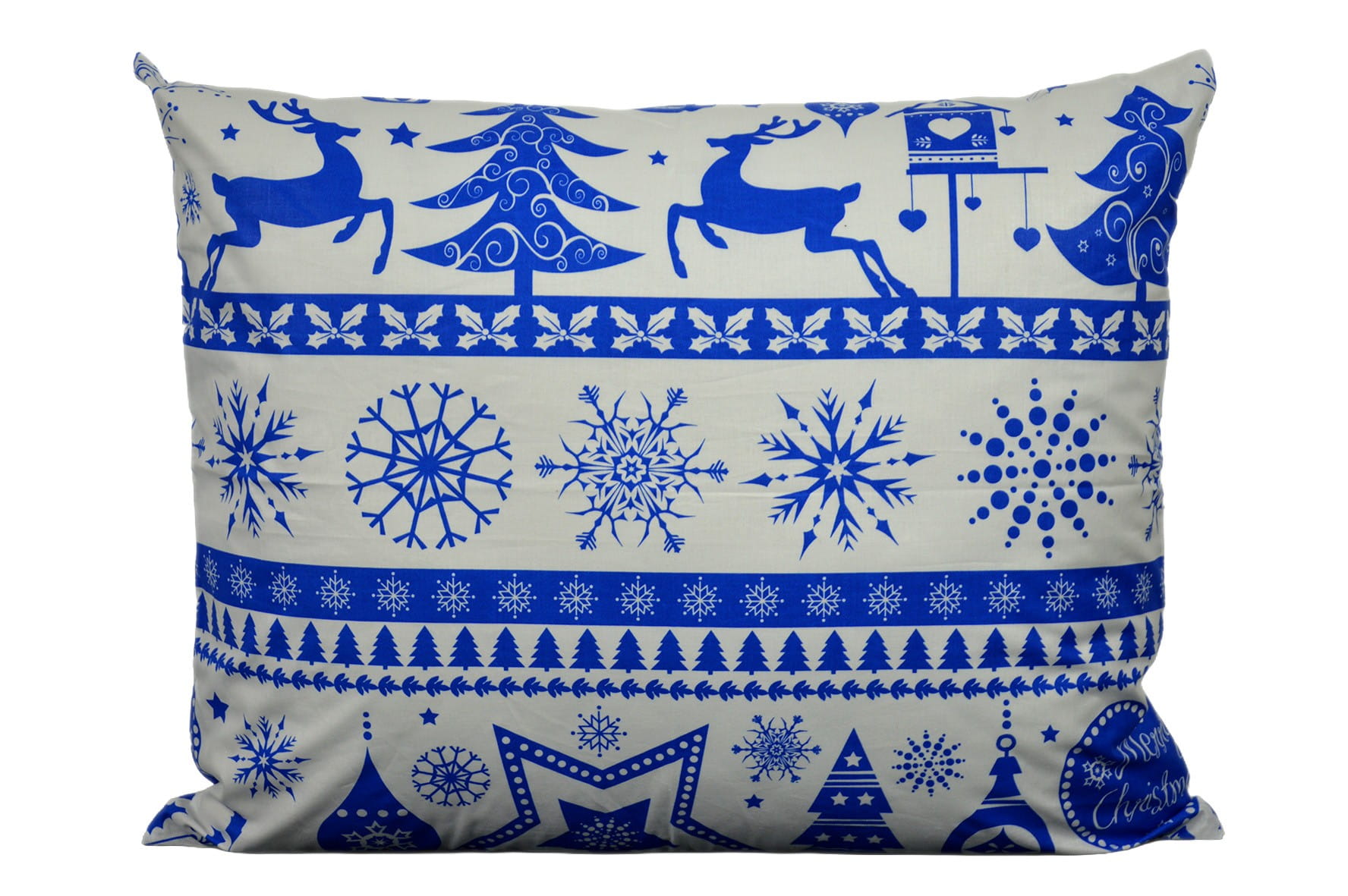 Poszewka bawełniana 50x60 świąteczna renifery niebieskie pasy 3524
